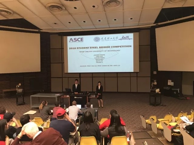 在钢桥比赛组装过程中,我校六名队员发挥稳定,首次在国际赛事中崭露头角,取得了理想成绩。在刚度指标、建设速度等方面的评比较为突出。与此同时,六名队员也注意观察学习其他高校在节点设计、拼装方法和杆件优化方面的优点,为今后改进积累经验。经各项成绩加总,大连理工大学位列分赛区第八名,这对于初次参赛的分会代表队来之不易。在桥梁的幻灯片展示中,张家宸同学和高兴同学默契配合,表达流利得体,面对评委的问题流畅回答,获得了评委老师和在场观众的一致好评。在以“社交媒体和工程师精神”为题的论文展示环节,来自李一超同学结合《礼记》中的传统文化,探讨了“工程师在社交网络上展示自己是一个工程师”是否符合ASCE code中的道德准则,体现了中华文化的魅力,与会嘉宾反响热烈。通过钢桥比赛、专业展示和文化交流,我校参赛队员对其他高校土木学科有了更为深入的了解,对于土木工程专业的未来发展有了更清晰的认识。