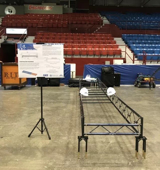 为响应高校国际化建设的号召,推进土木学科的发展,大连理工大学建设工程学部美国土木工程师协会大连理工大学学生分会代表团于2018年4月26日至29日赴美国特洛伊伦斯勒理工学院参加了由ASCE(American Society of Civil Engineers,美国土木工程师协会)和AISC(American Institute of Steel Construction inc,美国钢结构设计协会)联合举办的钢结构桥梁大赛。本次是ASCE大连理工大学国际学生分会首次派团参加钢桥竞赛。经过各项综合评定,大连理工大学取得优异成绩,位列分赛区第八名。
